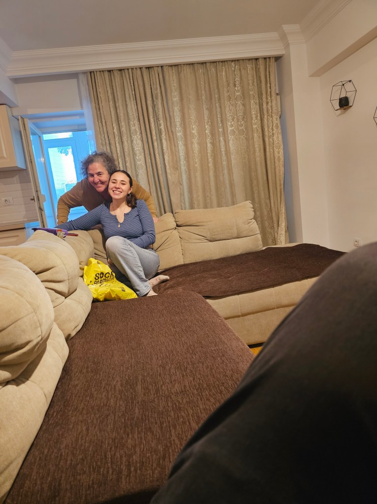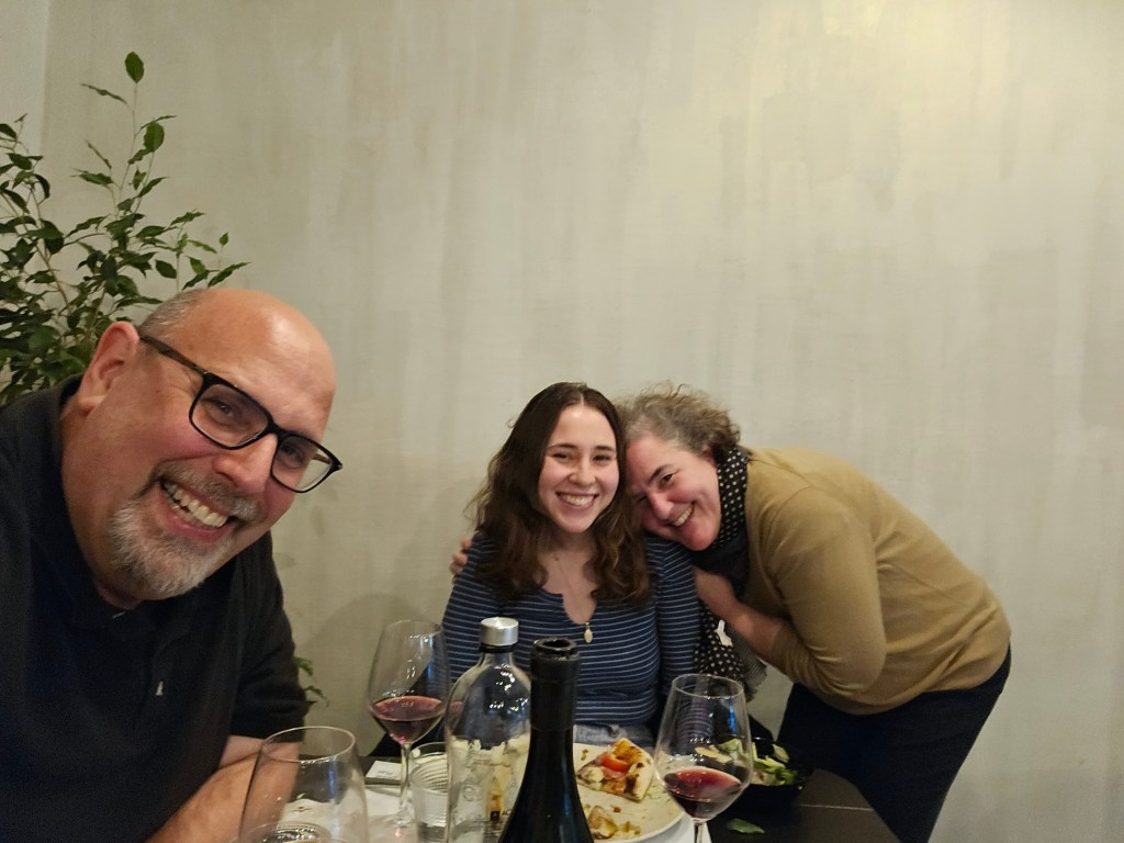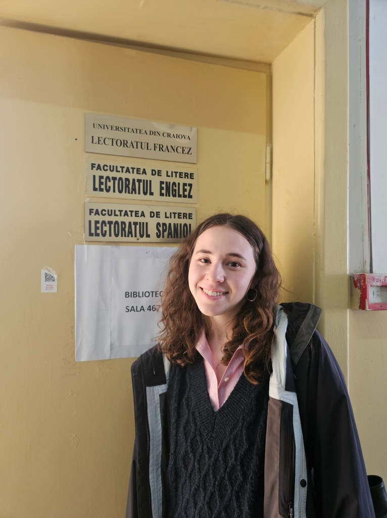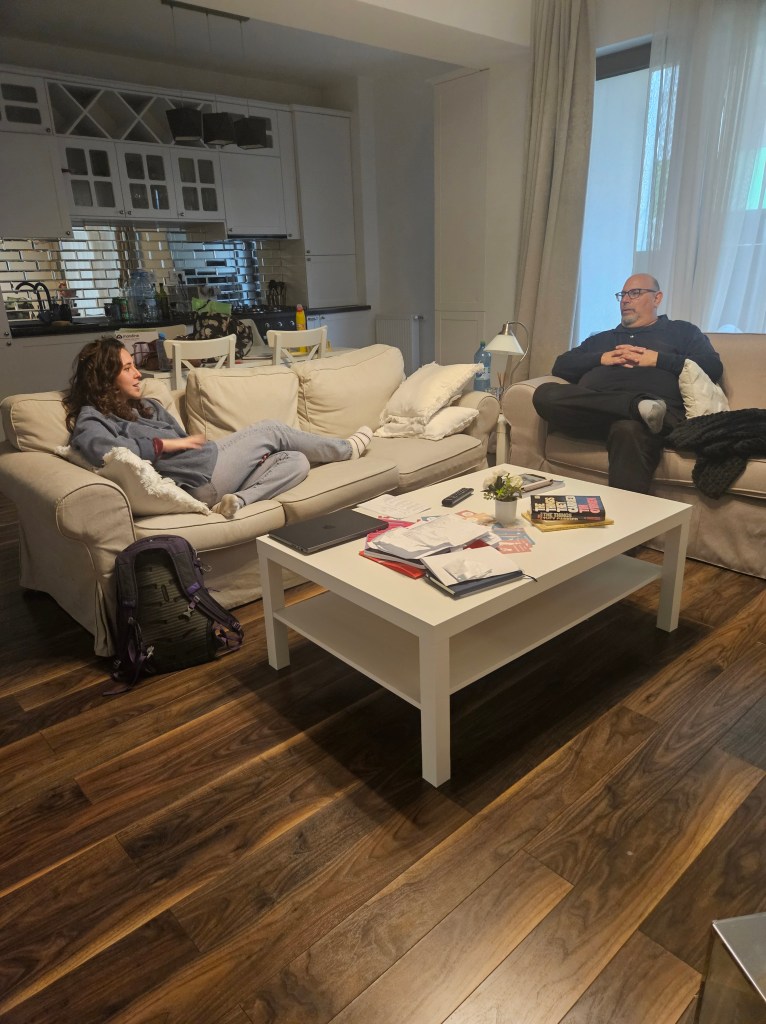 We had dinner at a pizza place near our apartment. It was great to see her! Not to speak too much for Marina, but she is doing well. Her semester started out challenging (she has around 100 students!) but she is getting more comfortable with the lesson planning and leading classes. She is teaching four sections of conversational English and one of text analysis. She really likes the students and they are responsive to her creativity. She is taking an intensive Romanian class – that language is hard! Meeting people is a challenge and she is exploring more ways to do so.
