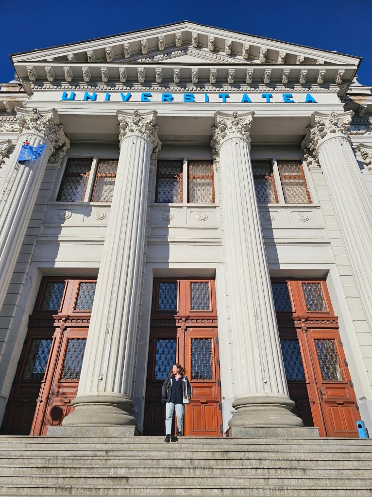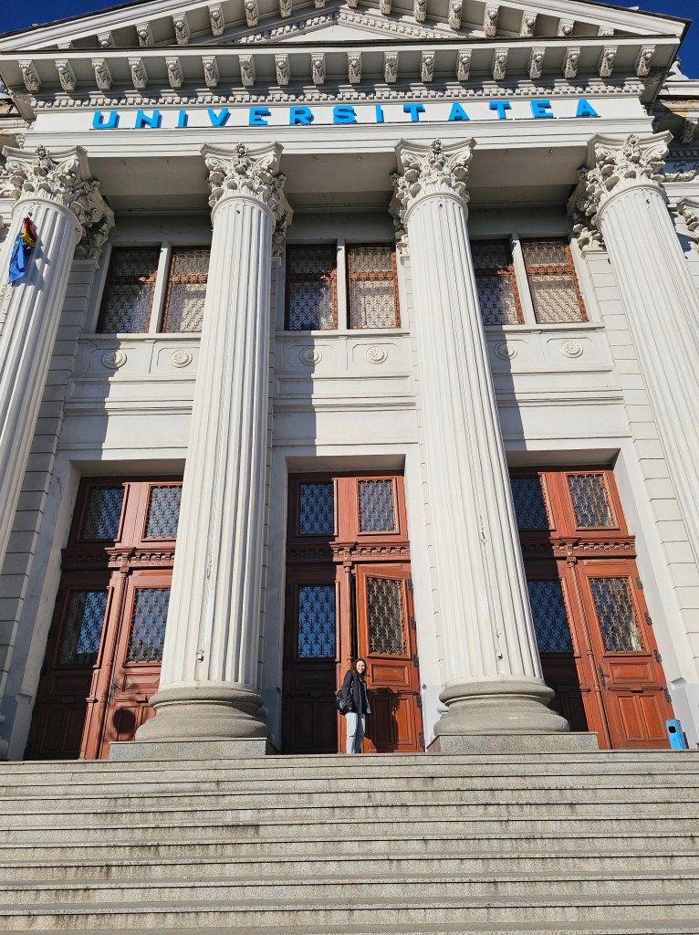 In the midday, we went to the University of Craiova to meet Marina. She gave us a tour of the historic building. Resources are more limited than she was used to, coming from the US, but the faculty works well with what they have.